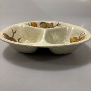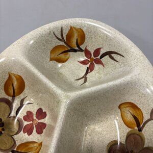 Radford Divided Ceramic Serving Dish 1970s Earth Tone Flowers Handpainted CHIP
