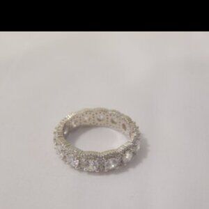 Diamonique Eternity Round-cut Halo Band Ring Size 8. Design Information: Round-cut Diamonique simulated diamonds all around band. Metal Type: Sterling silver; Metal Stamped: .925 Sterling silver. Plating: Silvertone; Finish: Polished. Total Diamonique Weight is Approx. 3.92 carats; all clear simulated diamonds. Condition: New Imported