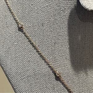 14K yellow gold plating over sterling silver necklace with clear Absolute cubic zirconia “diamonds”. Center daisy pendant station with 6 bezel set “diamonds” stations in chain