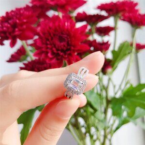 🌸Radiant Cut CZ Three Layer Stackable Silver Plated Dainty Wedding Ring, L145