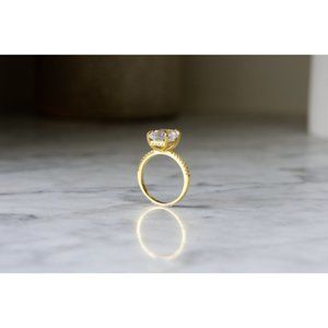 Beautiful, high quality radiant cut engagement ring featuring pave cubic zirconia stones on the band. A sophisticated ring to add glam to your look!