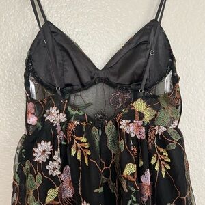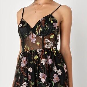 You're certain to stun at your next event when you wear the Lulus Radiant Fantasy Black Floral Embroidered Tulle Maxi Dress! Airy tulle boasts luxe embroidered florals as it shapes a sheer, bustier-style bodice with adjustable spaghetti straps, supportive boning, and seamed, lined cups. Low back adds a sultry effect that's sure to get all the compliments! Fitted waist tops an A-line skirt that falls to a sweeping maxi hem with a hidden layer of tulle for volume. Hidden zipper/clasp at back.