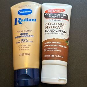 Experience deep nourishment with Radiant Hand Butter. This cream, in a soothing cream color, is enriched with coconut oil and vitamin C for youthful radiance. Perfect for keeping your skin moisturized and healthy.