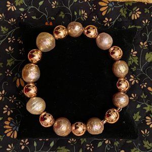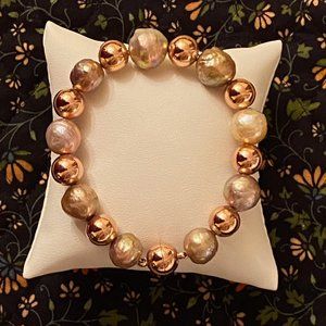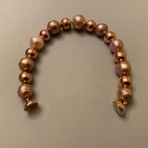 Radiant Honora Ming Pearl and Italian Rose Gold Bronze Bead Bracelet, 6.5"