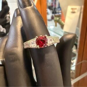 Radiant Red and Silver Gemstone Ring CZ stones Size 9 NWT