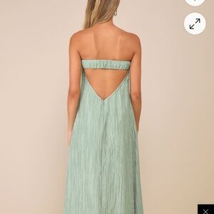 From elevated brunch looks to sunny garden cocktails, the Lulus Radiant Season Sage Green Plisse Cutout Strapless Maxi Dress is ready for all your sweet summer occasions! Plisse-textured woven fabric shapes this breezy-yet-elegant dress that has a strapless bodice with a straight neckline and hidden no-slip strips. Shift-style silhouette features a flirty back cutout (below an elasticized strap) as it falls to a maxi hem. Hidden zipper/clasp at back.
