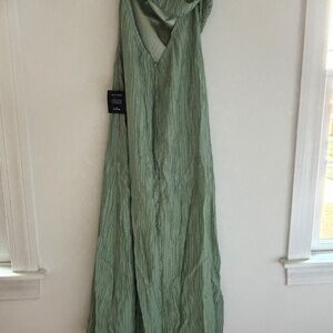 Radiant Season Sage Green Plisse Cutout Strapless Maxi Dress