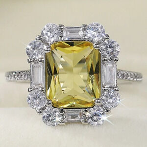 Radiant Yellow Zircon Sumptuous Silver Luxury Rings Women, K924