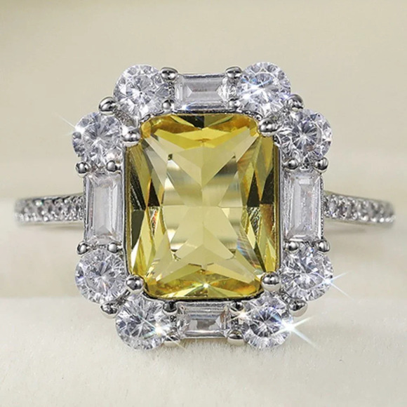 🌸Radiant Yellow Zircon Sumptuous Silver Luxury Rings Women, K924