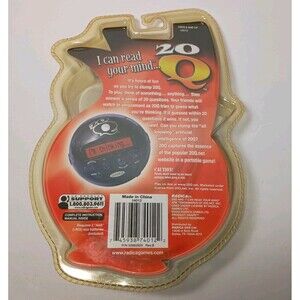 The Radica 20Q electronic game is a handheld version that challenges players to answer 20 questions within a time limit. Produced by Radica in 2003, this collector's item is still factory-sealed in it's original packaging and is designed for ages 8 and up, making it a fun and interactive game for kids and teens. With its compact size and simple gameplay, the Radica 20Q game provides hours of entertainment and learning opportunities for young players.