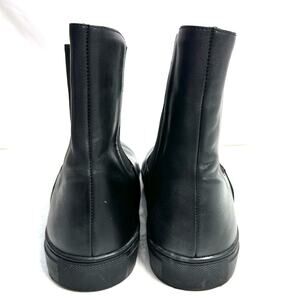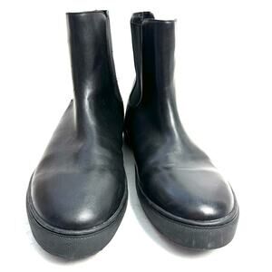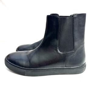 Great used condition! Black soft leather Chelsea boots. Ankle boots in a casual sneaker style with a black mid-sole and almond shaped toe. Australian merino wool lining. Minor imperfections throughout. Please see all photos.