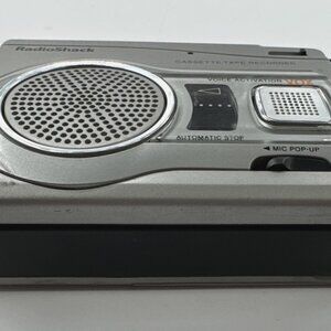 Vintage Radio Shack CTR-122 Voice activated cassette tape recorder, as pictured. Good overall condition with no corrosion in the battery compartment. Some scuffs and scratches. Requires 2 AA batteries (not included). Smoke free/pet free. Please review all photos for details and ask any questions. Orders are shipped out daily, Monday – Friday.