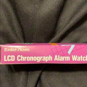 Radio Shack chronograph alarm watch. I was cleaning out closet and came across this. Still in the box! Never used! It’s gotta be about 15 years old. It’s been in the box so I have no idea what working condition it’s in.