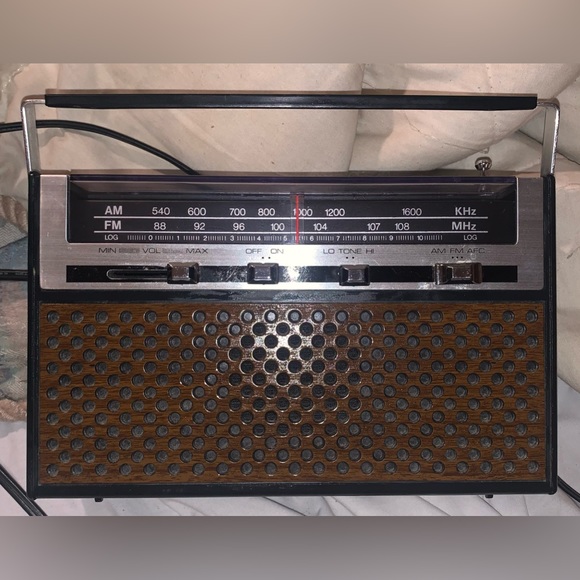OLD RADIO AM/FM COMES WITH PLUG AND TURNS ON CONDITION IS GOOD.