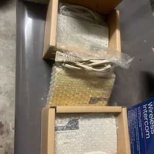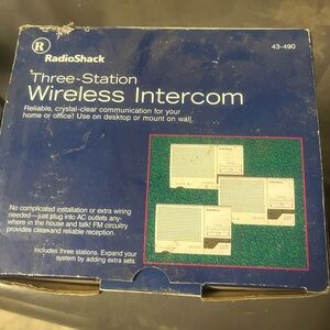 RadioShack three-station wireless intercom. Easy plug and talk feature. This was bought, but never used. Never taken out of the box.