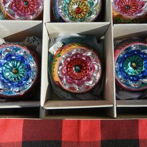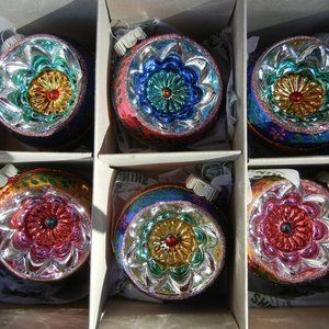 Radko Shiny Brite Cc Decorated Rounds Deep Reflectors - 9 Glass Ornaments