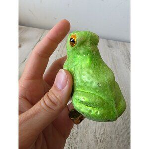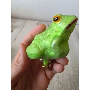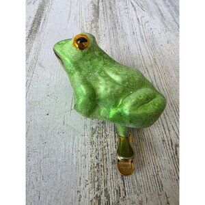 Radko classic frog toad clip ornament amphibian glitter green unique Xmas tree