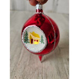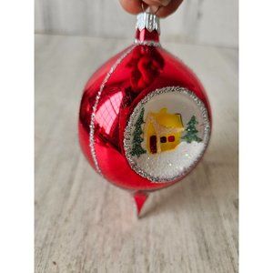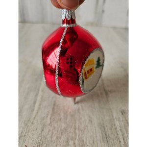 Radko country scene red indent reflector teardrop ornament vintage Xmas tree
