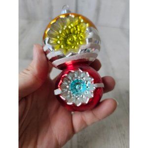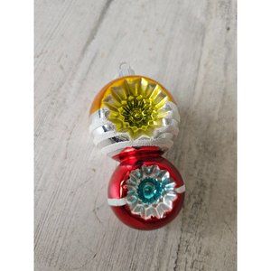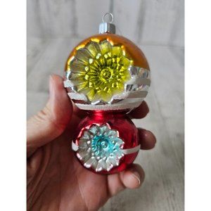 Radko shiny Brite double reflector vintage striped orange red ornament Xmas tree