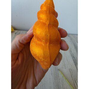 Radko vintage yellow sea swirl seashell shell glitter Beach ornament glass Hawaiian Xmas tree