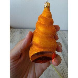 Radko vintage yellow sea swirl seashell shell glitter Beach ornament glass Hawai