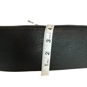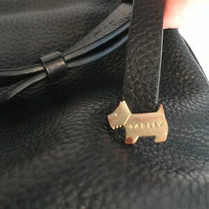 Pre owned. A photo shows the stitching on the strap. It looks like this is how the manufacturer made it. This Radley London black leather crossbody bag pairs functionality with style. Its adjustable strap ensures a comfortable fit, while its sleek finish offers a professional touch suitable for many occasions. A perfect blend of modern design and classic appeal, ensuring your essentials are carried in elegance.