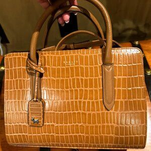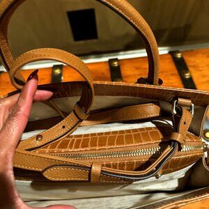 Crafted in croc-effect leather, Grained leather trims, Grab handles. Or, carry as a cross-body.