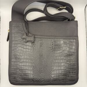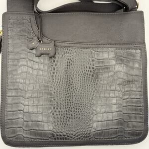 Radley London Medium Zip Around Ash Gray Leather w/Faux Croc Crossbody Bag, EUC!