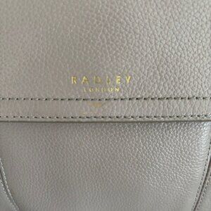 Pebbled bovine leather with a full zip top. Leather and lining are in very good condition. There are two minor scuffs on the corners and a tiny scuff under the logo (pictured in photos). Lining is also in very good condition with a few minor stains from normal wear. Buckles and bottom snap have a little discoloration (in photos). Leather straps are adjustable and are also in very good condition. Bag has been gently used and looks beautiful. Color is a soft lilac.