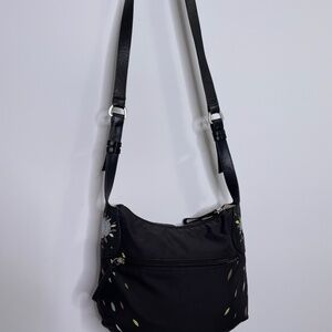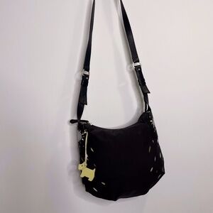 Radley London black nylon crossbody yellow terrier tag abstract print.