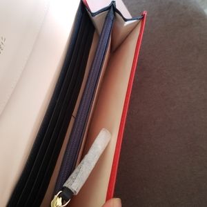 New. Red outside baby pink inside, and navy blue card slots and zipper.