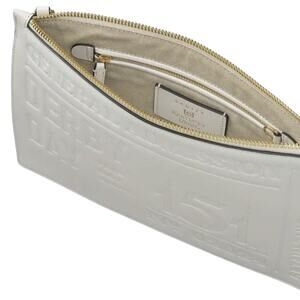 Made from smooth leather and embossed with commemorative ticket details, this elegant bag offers versatile wear: carry it as a sleek clutch for evening events or as a crossbody with the detachable chain strap for effortless day style. The braided leather handle adds a refined designer touch that sets it apart.