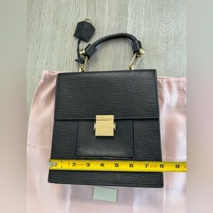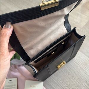 A classy leather bag with removable strap.