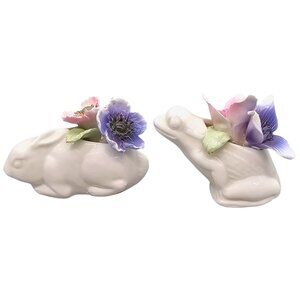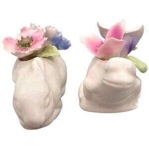 Radnor Bone China Rabbit & Frog Figurines With Flower Accents England Handmade