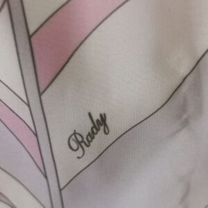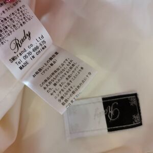 Rady (Japanese brand) one size clean pre-owned dress shipped with care. The dress has a snag/run in the fabric on the front (third photo). There is a pastel purple and pink swirl print featuring the Rady logo, and a ribbon belt that has the Rady logo on the metal tips of the belt. Rady is a brand featured in the gyaru magazine Koakuma Ageha.