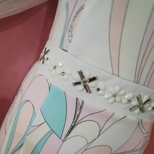Pre-owned clean good condition 'Rady' Japan Import mini dress with bling details at the waist and Rady logo swirl print. Zippered back. Rady is a brand featured in the gyaru magazine Koakuma Ageha.