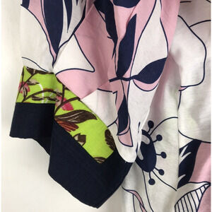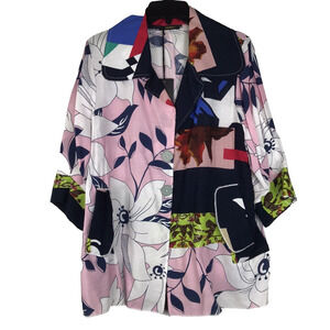 New With Tags Radzoli Short Sleeve Button Front Top Blouse Graphic Floral Print Pockets Pink Navy Women's Size XXL