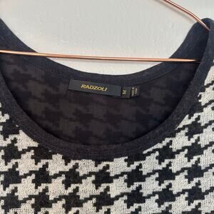 This Radzoli sleeveless sweater is a stylish addition to any wardrobe! Featuring a classic houndstooth pattern, it's fully lined and lightweight, making it perfect for layering. The sweater is in excellent condition and comes in a size medium. Don't miss out on this versatile and chic piece!