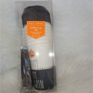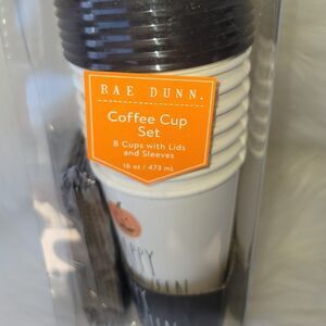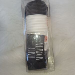 Rae Dunn 16oz 8 cups with lids and sleeves HAPPY HALLOWEEN 🎃 JACK black/Ivory