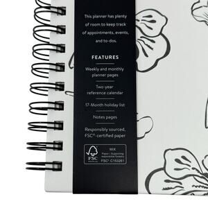 Rae Dunn 2026 17 Month Planner White Black Floral Hardcover Aug 2025-Dec 2026