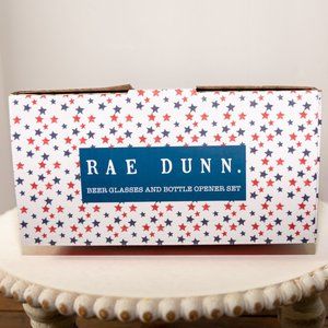 Set of two beer glass and a bottle opener still in the box. Celebrate America's Birthday in style with a Rae Dunn beer glass.