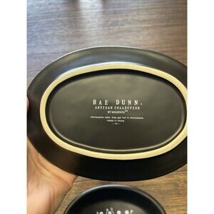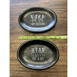 Rae Dunn Artisan Collection Black Halloween Skeleton Oval Dishes lot of 2
