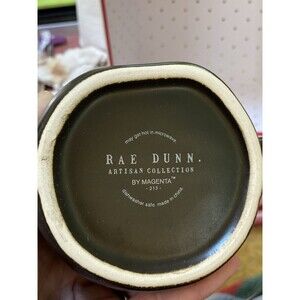 The Rae Dunn Artisan Collection Happy Haunting Black Mug is a modern farmhouse style coffee mug with a glossy finish and a double-sided Halloween theme. Made of ceramic, this 16 oz - 18 oz mug features a round shape with a handle, and is microwave and dishwasher safe. Perfect for all occasions, especially Halloween, this original piece is machine washable and suitable for hot beverages. The black color and Happy Haunting pattern make it a charming addition to your kitchen decor. Produced by Rae Dunn by Magenta, this artisan collection item is a stylish and practical choice for anyone looking for a unique Halloween-themed mug.
