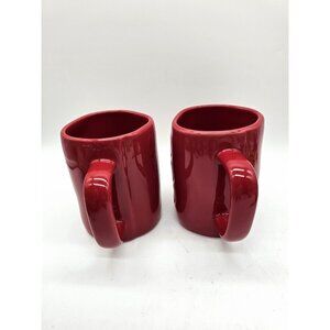 This product is a pair of Rae Dunn Artisan Collection coffee mugs in a festive magenta color, specifically designed for Christmas. Each mug features a unique holiday-themed word with one saying "Cheer" and the other "Ho, Ho, Ho". The mugs are part of Rae Dunn's Artisan Collection, known for its simple and rustic pottery design. Perfect for enjoying a warm cup of coffee or tea during the holiday season, these mugs are sure to add a touch of festive charm to any kitchen or dining table. Measurements in photos.  Pre-owned in excellent condition