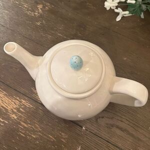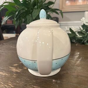 Rae Dunn Artisan Collection by Magena Teapot Pastel Blue Black Polka Dots POUR