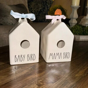 Rae Dunn Artisan Magenta Ceramic Birdhouse Collectible BABY BIRD / MAMA BIRD