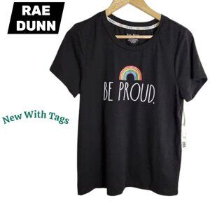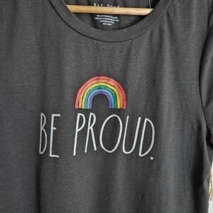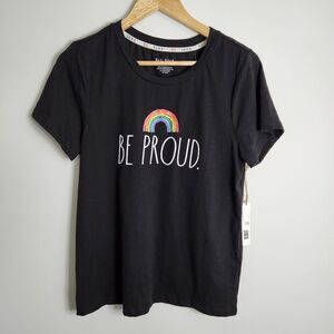 🖤 Rae Dunn “BE PROUD.” Rainbow Graphic Tee – Size L – Pride Shirt – Black