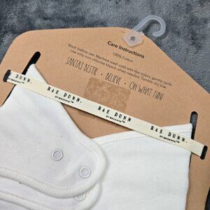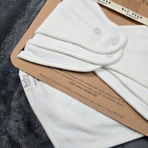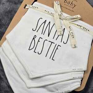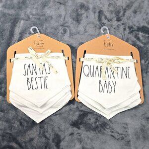 Rae Dunn Baby by Magenta™ 3-pack bib set — brand new in original boutique-style packaging! Each set features three soft cotton bandana bibs with Rae Dunn’s signature minimal text designs. Phrases include “Santa’s Bestie,” “Quarantine Baby,” “Oh What Fun,” “Believe,” and more depending on pack. Neutral white cotton with adjustable snap closures.