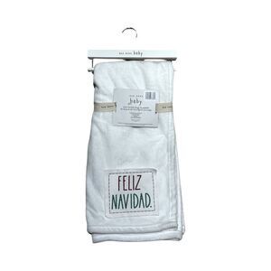 Rae Dunn Baby - Soft Plush Baby Blanket - Feliz Navidad - White 30” x 40” NWT