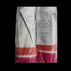 Rae Dunn Beach Towels Lot of 4 - White & Pink 36x68, New with Tag